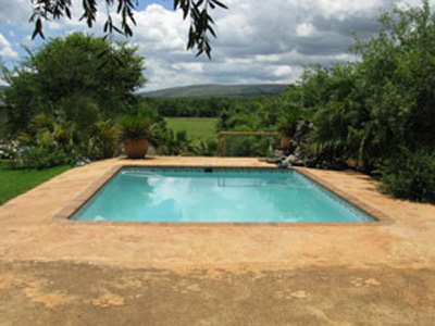 The farm has 4 secluded fully equipped one & two bedroom self-catering cottages, set in a tranquil natural bush setting. Each cottage has a covered veranda with a built in braai and supplied with a Cadac “skottel”. The bedrooms have bay windows and have bathrooms en suite. The tastefully decorated cottages are finished with ceramic tiled floors. Each kitchen is equipped with the necessary crockery, cutlery, pots and pans, as well as with a gas stove and a micro-wave oven. All linen and bath towels are provided. Guests should bring their own swimming towels. A salt-water swimming pool is situated in the picturesque garden.